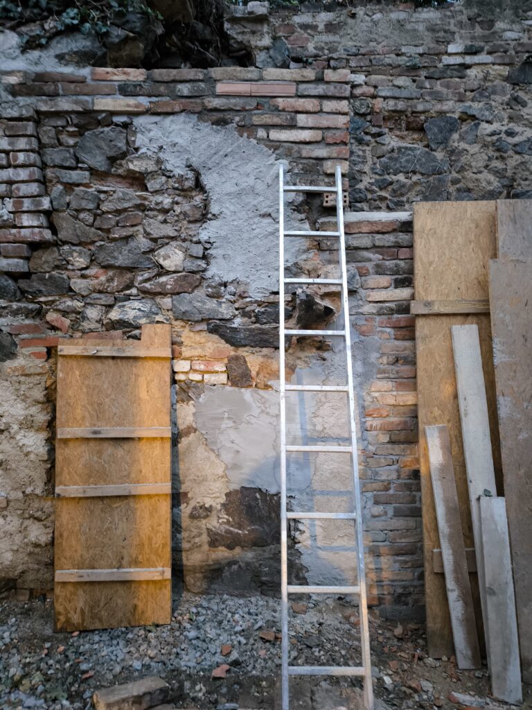 – vyzdění a oprava zdi na dvoře