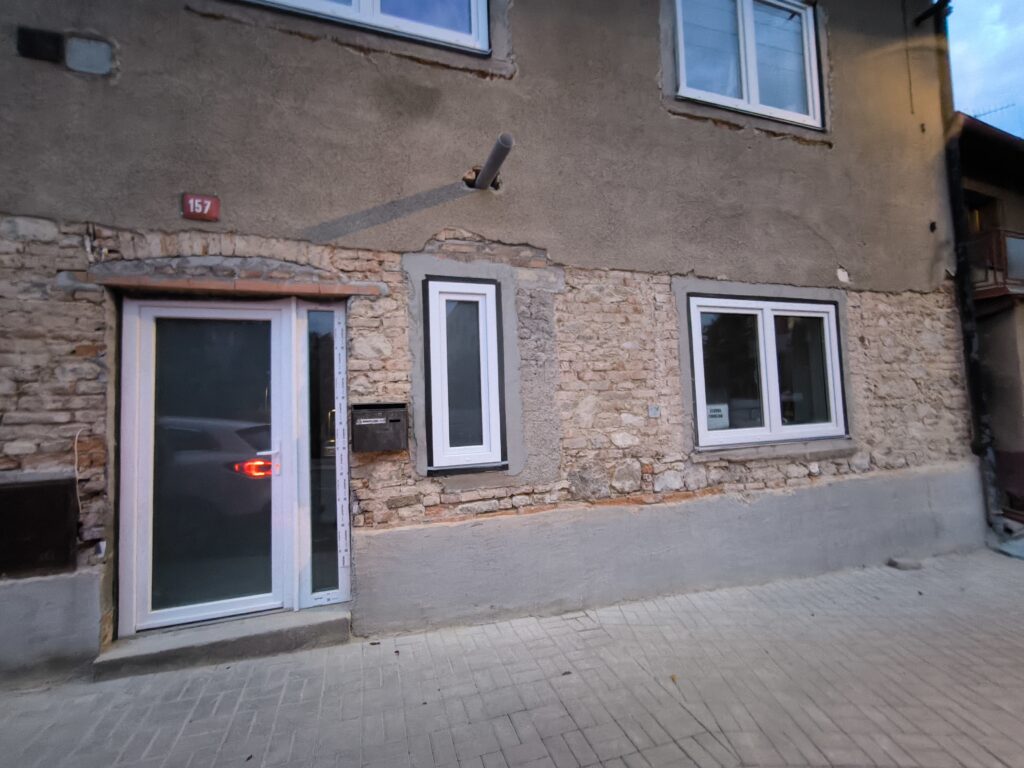 – osekání omítky z venku domu