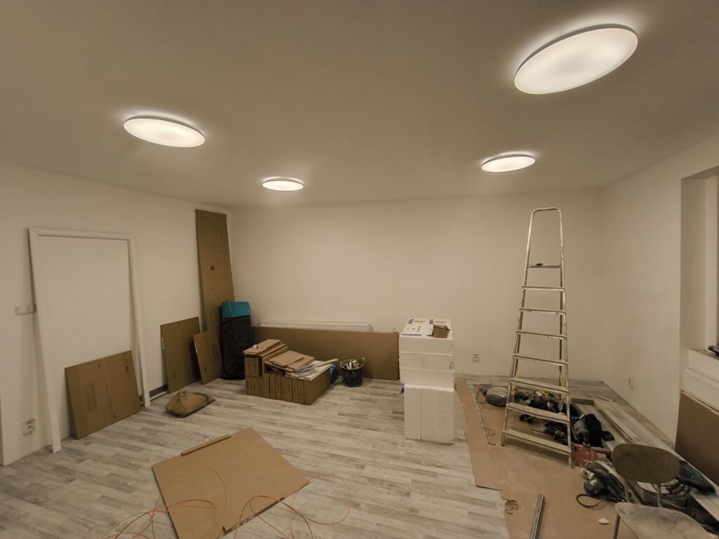 – montáž sádrokarton příčky a instalace dveří