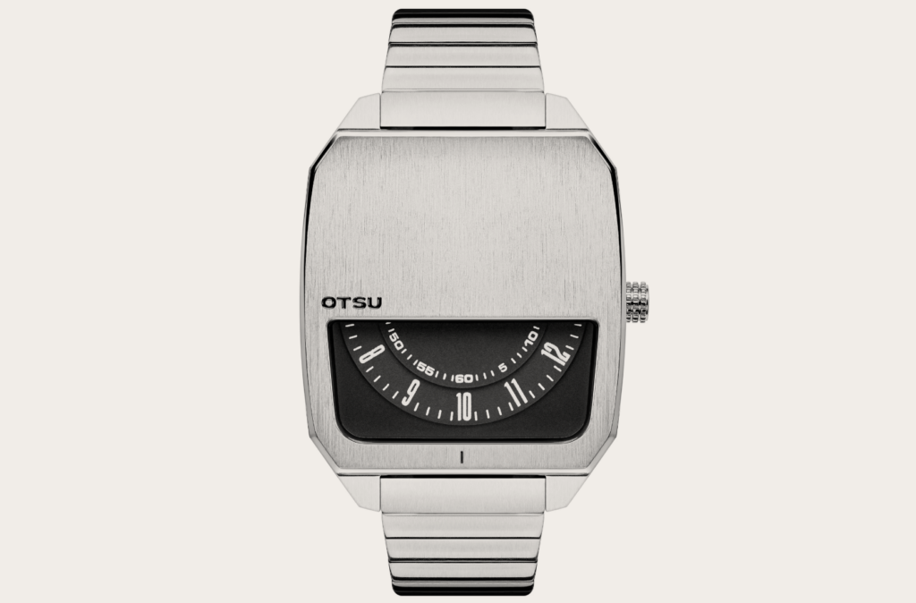 The OTSU Hoc is the brand’s signature „half-dial“ watch. It is designed to „reduce time to its essentials“ by concealing half of the face, leaving only a small window to view the passing hours and minutes.